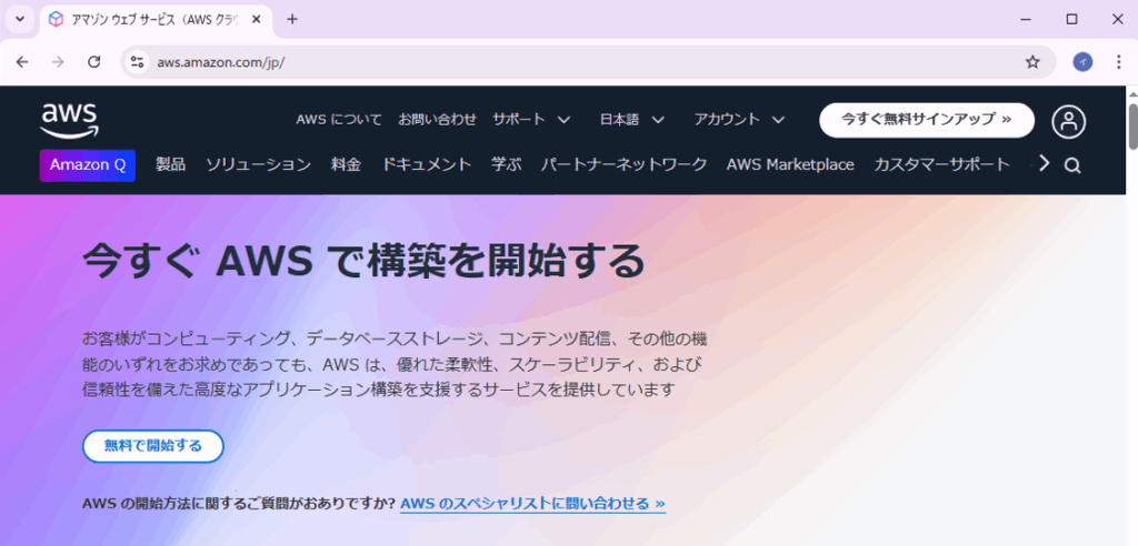 まずはAWSのホームページにアクセスします。