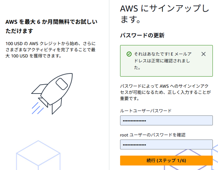 最初に作成する「ルートユーザー」のメールアドレスとなります。