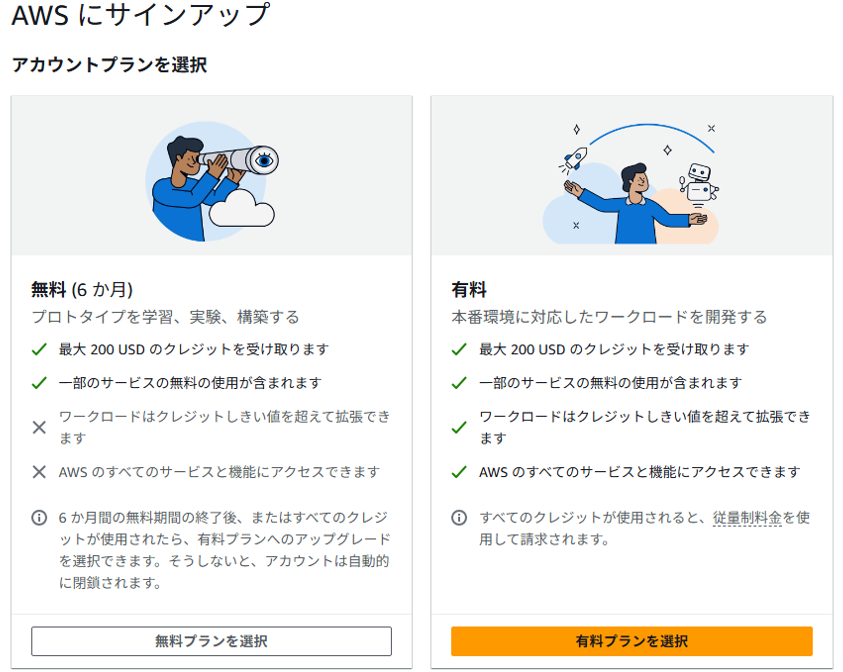アカウントプランを選択